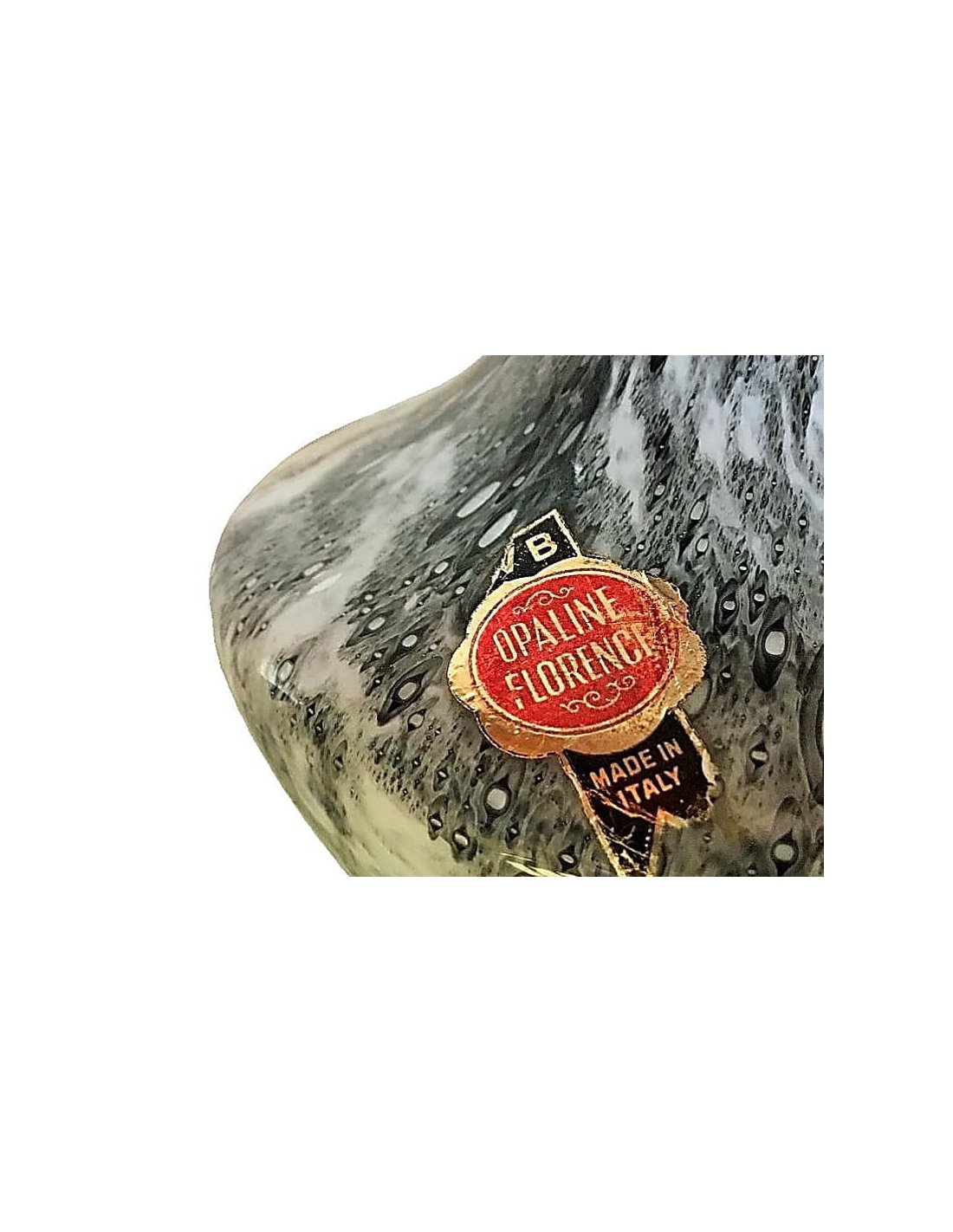 Die Vase ist typisch für das Design der Empoli-Region in Italien. Sie stammt von der Firma Vetreria Barbieri, die unter dem Namen VB Opaline Florence bekannt ist und in den 1970er und frühen 1980er Jahren Opalglaswaren herstellte.