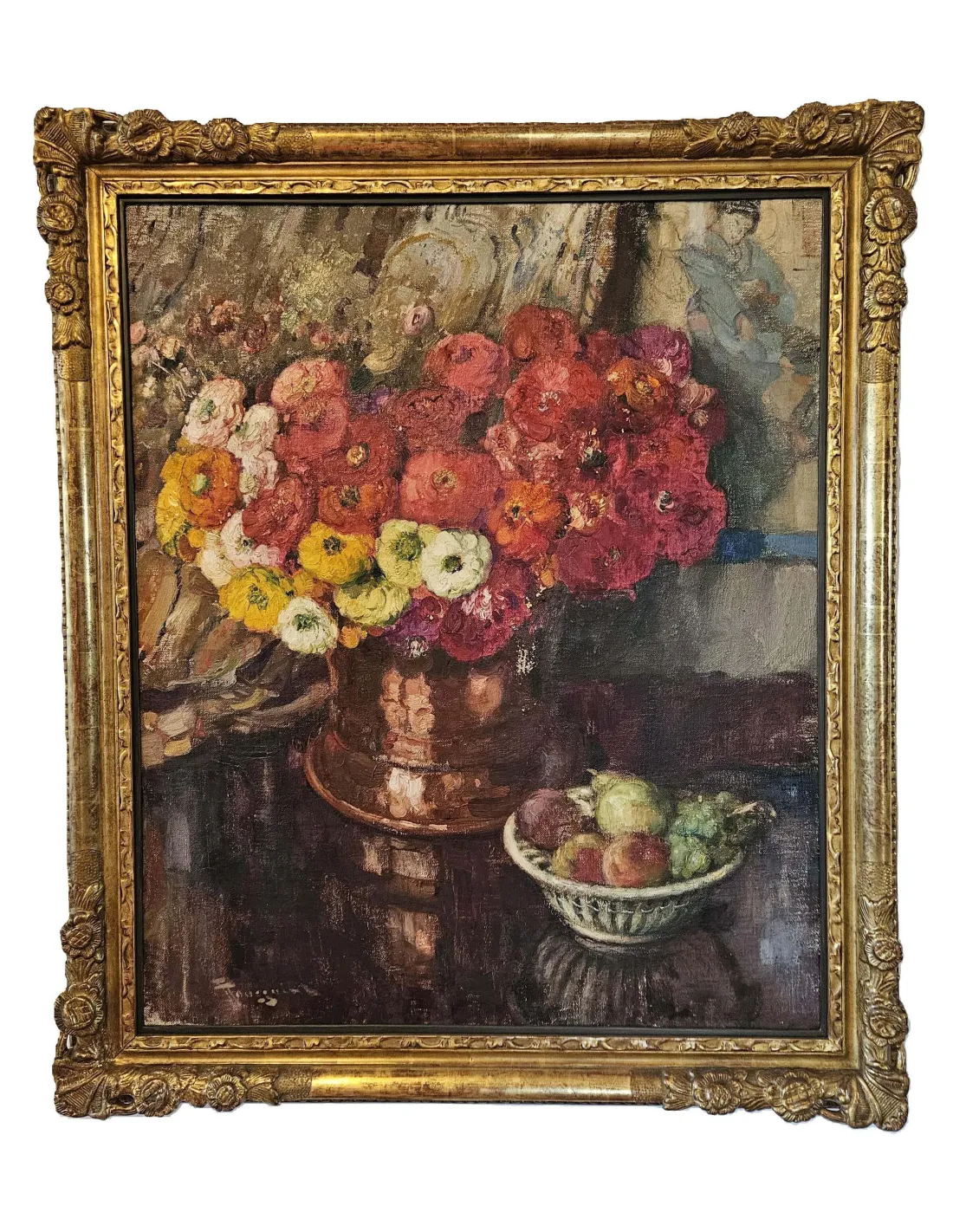 Fernand Toussaint – Stillleben mit Blumen und Früchten.