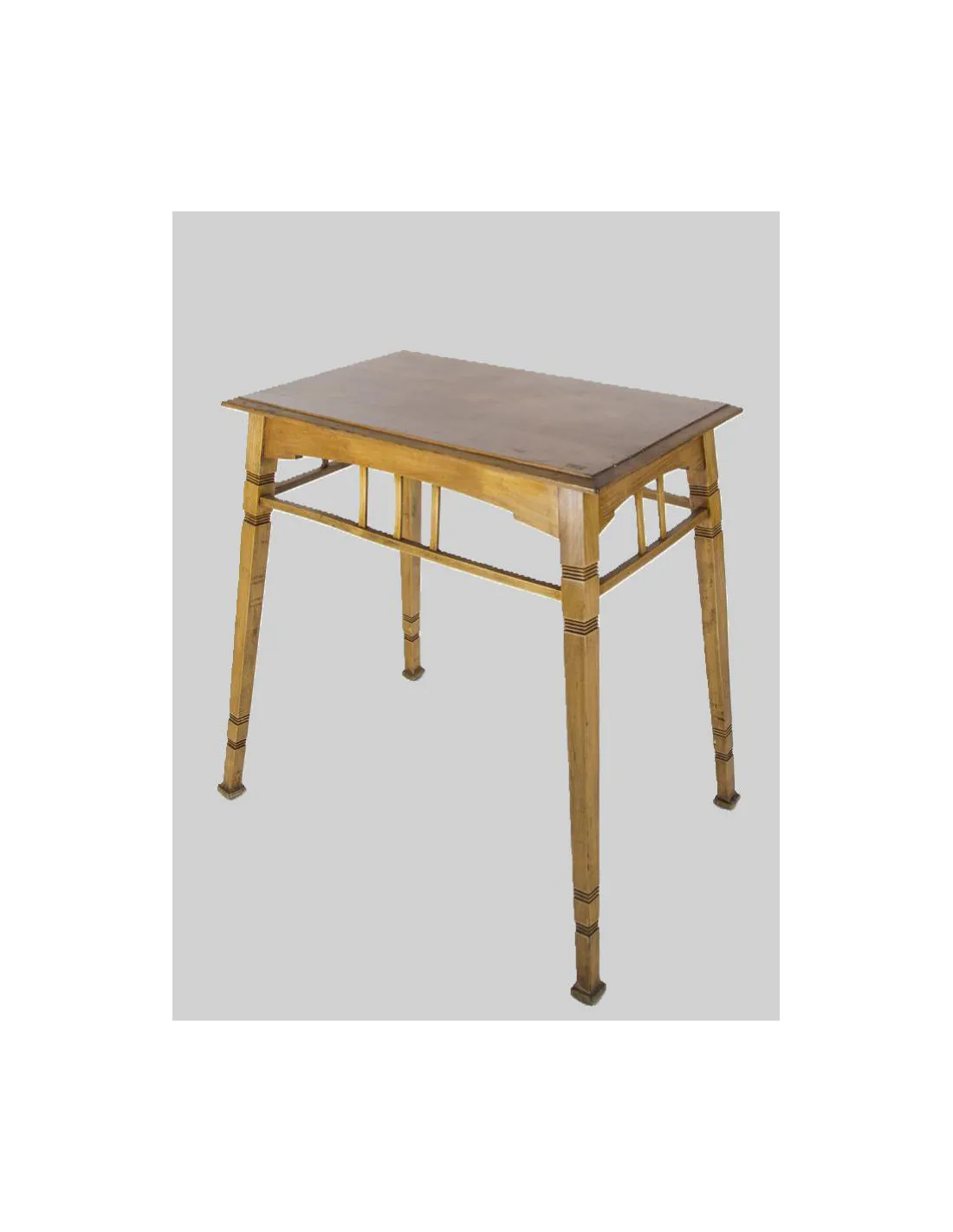Eleganter Jugendstil-Beistelltisch, wohl aus Belgien, um 1900. Das Möbelstück überzeugt durch seine ausgewogenen Proportionen, die schlichten Linien und die feinen handwerklichen Details.