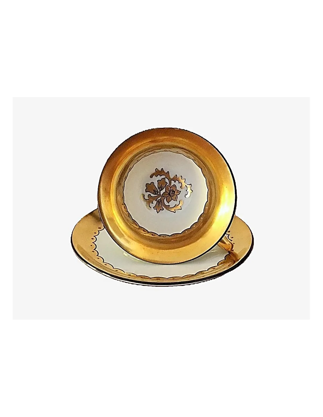 Art Déco Porzellantasse mit Vergoldung & Schwarzlot