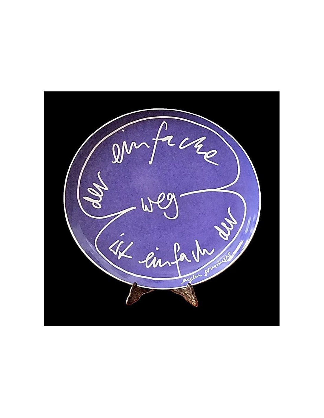 Artist Plate No. 3, designed by Eugen Gomringer for Rosenthal in 1974 with the inscription "The simple way is simply the way" is a striking example of the artist's clear, reduced, and yet profound language: language becomes image, typography becomes composition.
