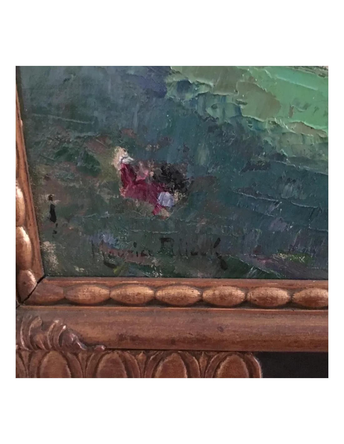 The original wooden frame, with its egg-and-dart relief and gilded moldings, also dates from this period. Typical of late Historicism and early Art Nouveau, it emphasizes the depth of the image and lends the work a stately presence. Its craftsmanship and original condition make it a valuable companion to the painting.