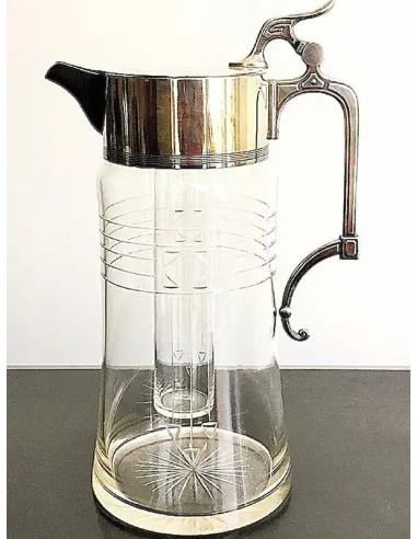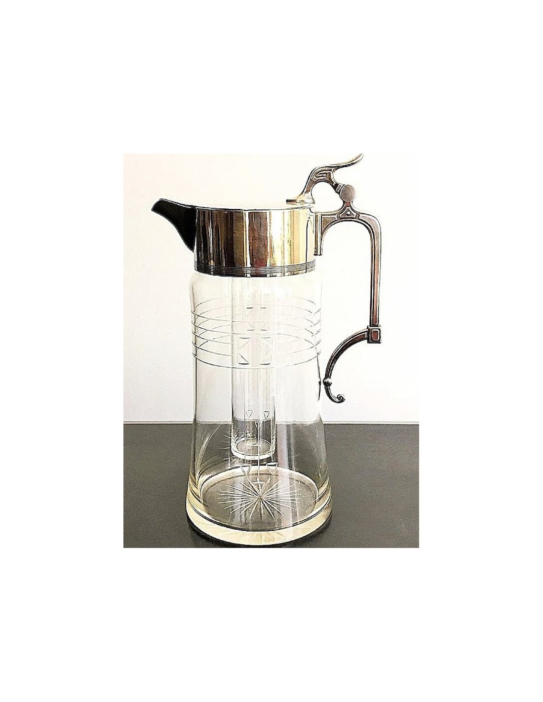 This crystal jug was created around 1900 and features an original cooling insert. The design follows the Art Nouveau style with clean lines and understated ornamentation.