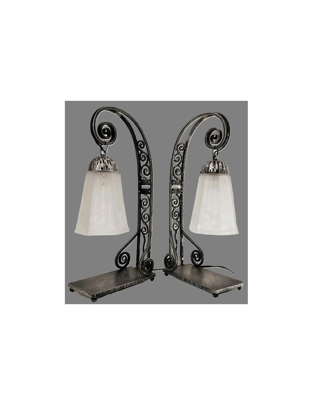 This original pair of table lamps by Muller Frères embodies the French Art Deco movement at its finest, demonstrating the harmonious blend of artistic craftsmanship and elegant design from the late 1920s to early 1930s.