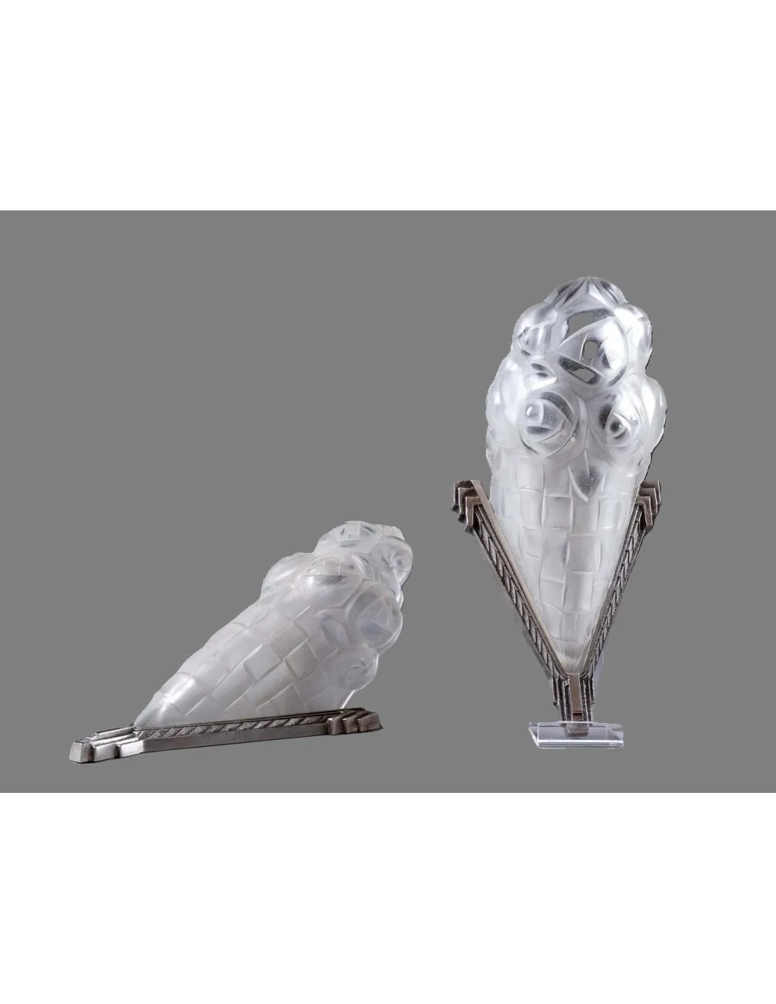 - The high-quality material combination (frosted glass and silver bronze) underscores the luxurious appeal of the era.