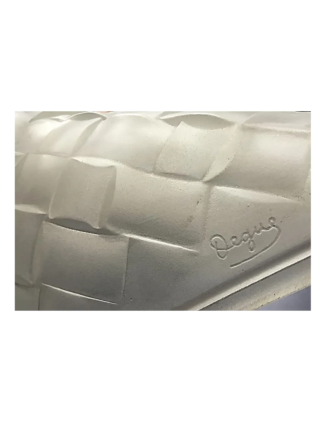 The Degué brand originates from the entrepreneur and designer David Guéron (1892–1950), a glassmaker originally from Turkey. Guéron initially founded the "Cristalleries de Compiègne" and, starting in the mid-1920s, established the "Degué" brand in Paris, composed of the initial letters of his name, D (phonetically = De) and G (phonetically = Gue). Under this name, Guéron presented high-quality glass objects – vases, bowls, lamps, and wall appliqués – that impressed with both their elaborate pressing and overlay techniques and their artistic design.