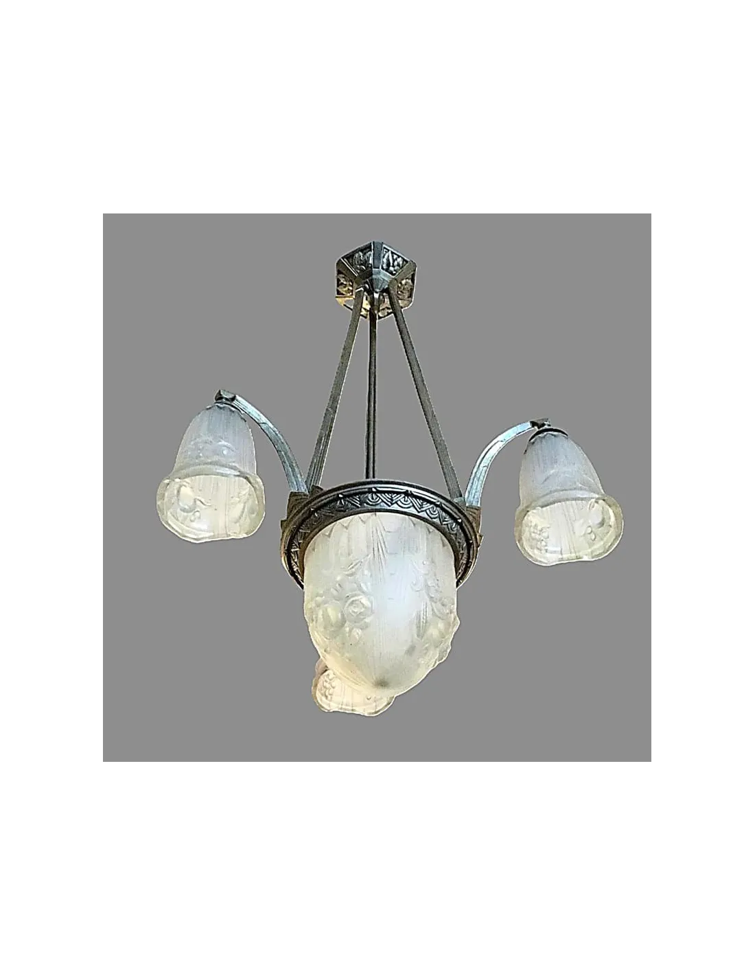 Art Deco four-bulb ceiling lamp – elegance and craftsmanship from France