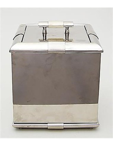 This elegant ice cube box made of polished, chrome-plated metal was designed in the 1970s by Italian designer Tommaso Barbi and is marked "Tommaso Barbi – Made in Italy" on the base.