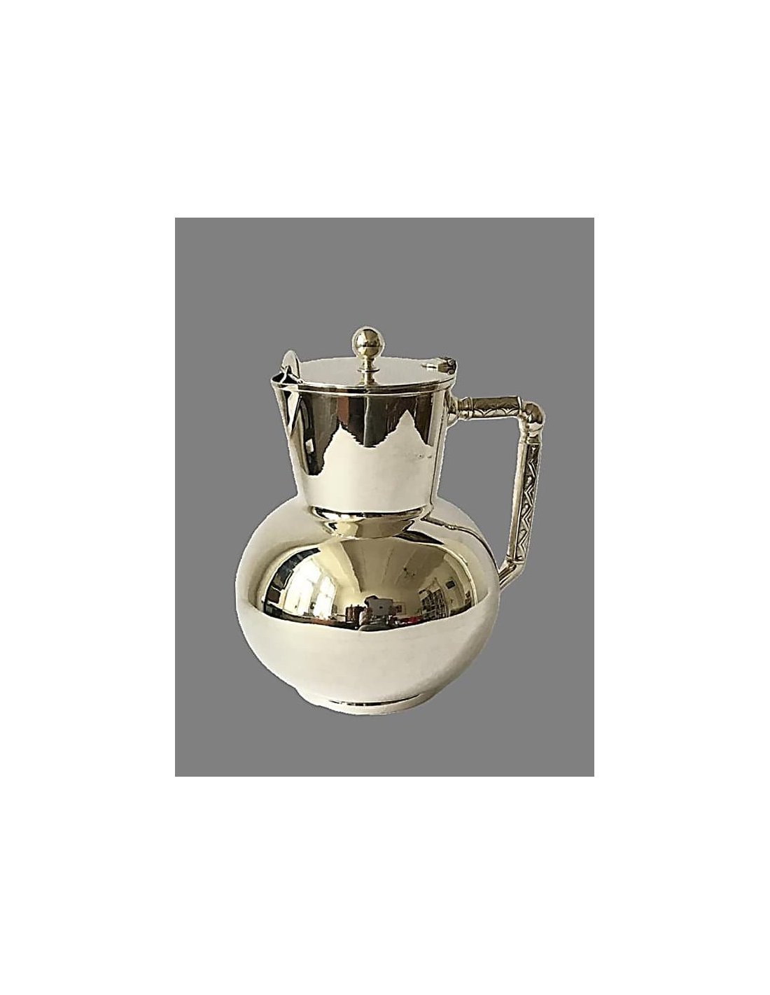 Elegant silver jug made of 925 sterling silver, 21 cm high, with a precisely fitting lid and a small, finely crafted spout. The spherical, highly polished body emphasizes the clear, modern design.