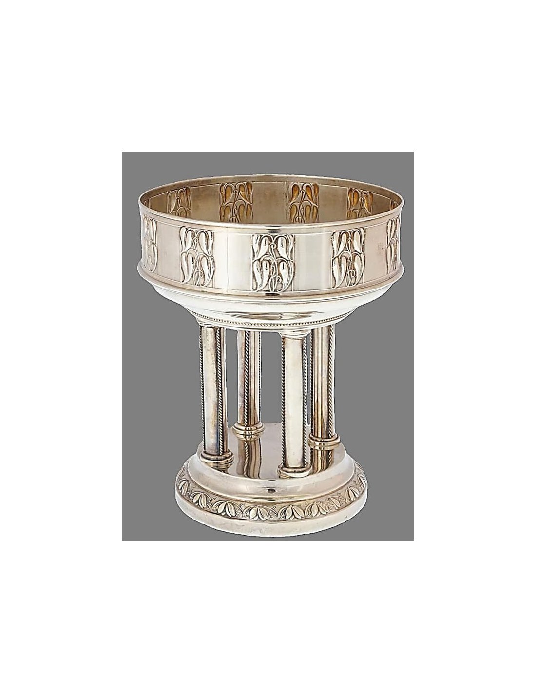 La conception de ce centre de table date d'environ 1910 et est attribuée à Emanuel Josef Margold. L'œuvre de Margold marque la transition de l'Art nouveau floral au langage formel plus fonctionnel du modernisme. Le centre de table présenté ici, avec sa structure rythmique et ses reliefs floraux stylisés, illustre parfaitement cette transition.