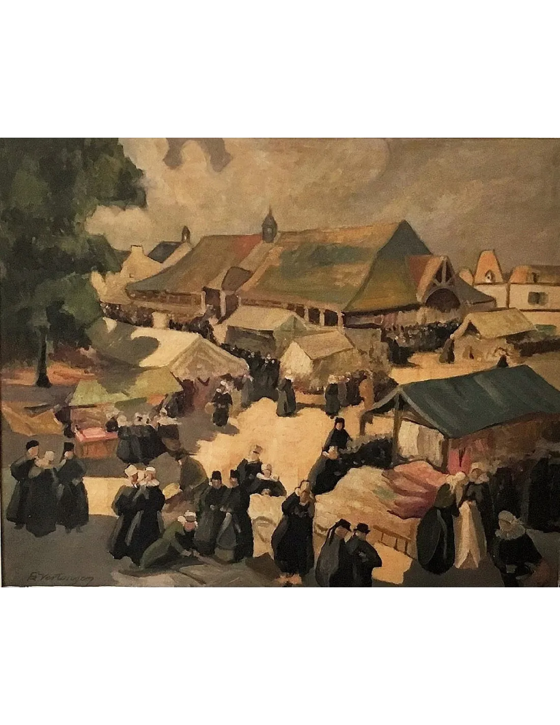 Peinture du peintre belge Frits Vertongen, titré "Marché en Bretagne"