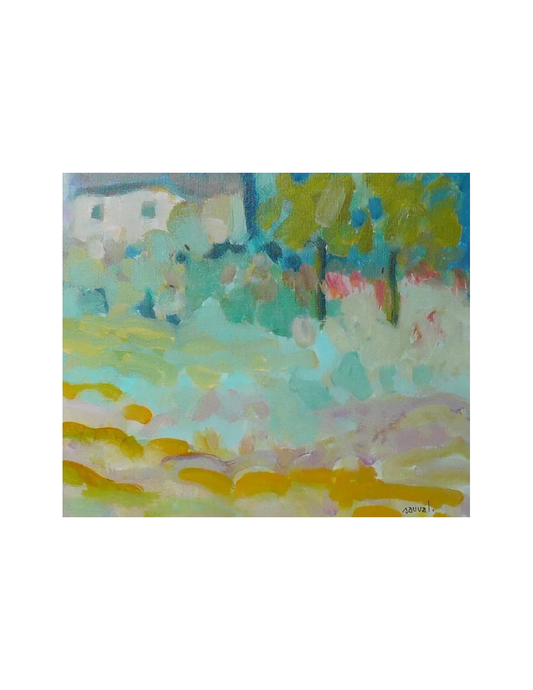 Le style impressionniste de Sauval se caractérise par des coups de pinceau amples, une dissolution des contours nets et un jeu magistral de lumière et de couleur. Le tableau respire la tranquillité, la proximité avec la nature et l'harmonie.