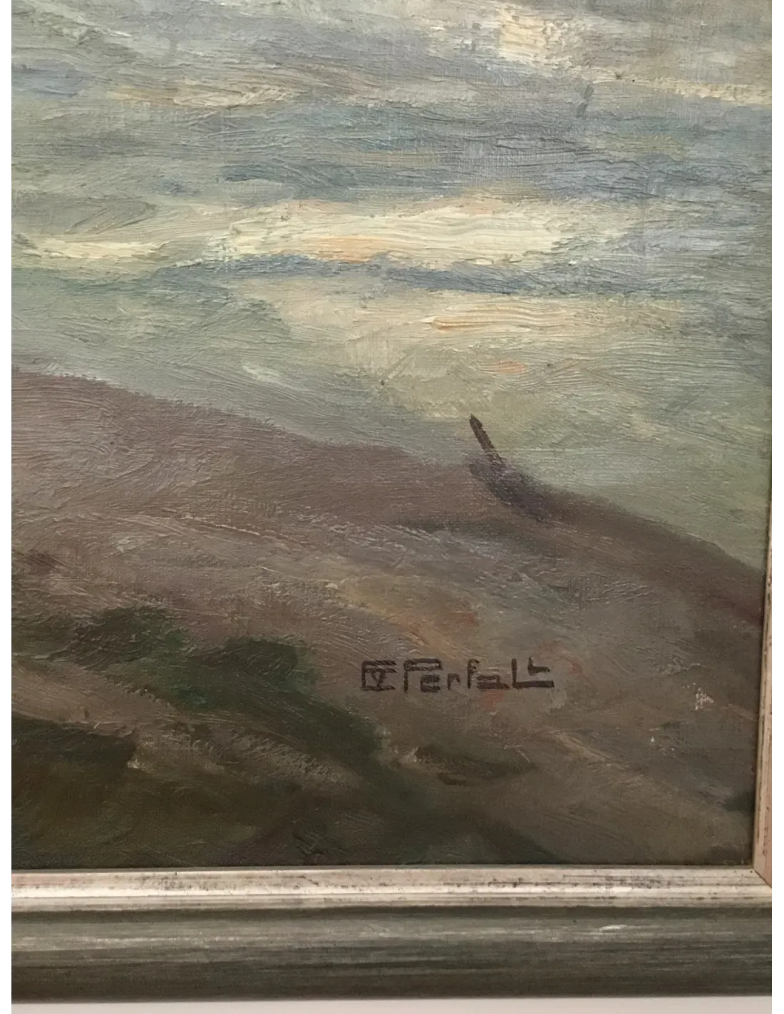 Erich Freiherr von Perfall n'a jamais échappé à l'atmosphère de sa région natale : cette œuvre a probablement été créée lors de ses longues promenades le long de l'Erft, qu'il a peintes en plein air principalement dans les années 1920 et 1930. Signé « EPerfall » en bas à droite, il confirme l'authenticité du travail en atelier et sur le terrain de l'artiste et correspond stylistiquement à ses œuvres bien connues telles que « Sur l'Erft ».