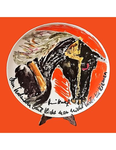 L'assiette d'artiste Rosenthal d'Hildegard Knef est une pièce de collection exceptionnelle, alliant l'art de la porcelaine à l'expressivité et à l'humour caractéristiques de l'une des artistes allemandes les plus importantes du XXe siècle.