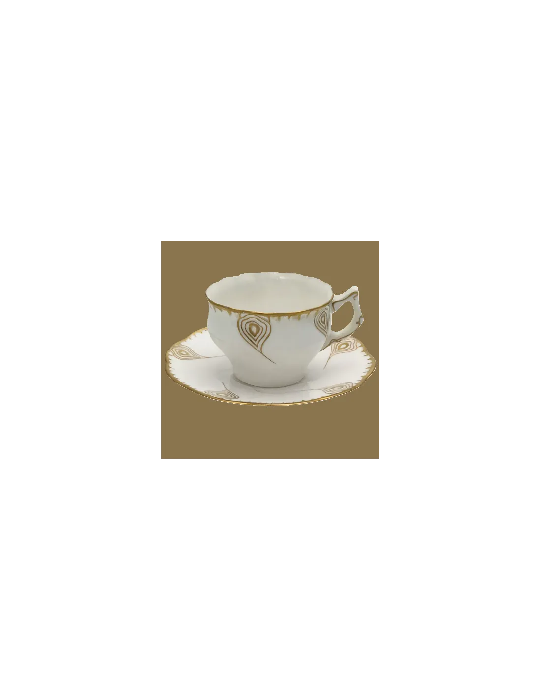 Tasse à café Art Nouveau de Utzschneider en céramique décorée d'une dorure ornementale et motif floral.