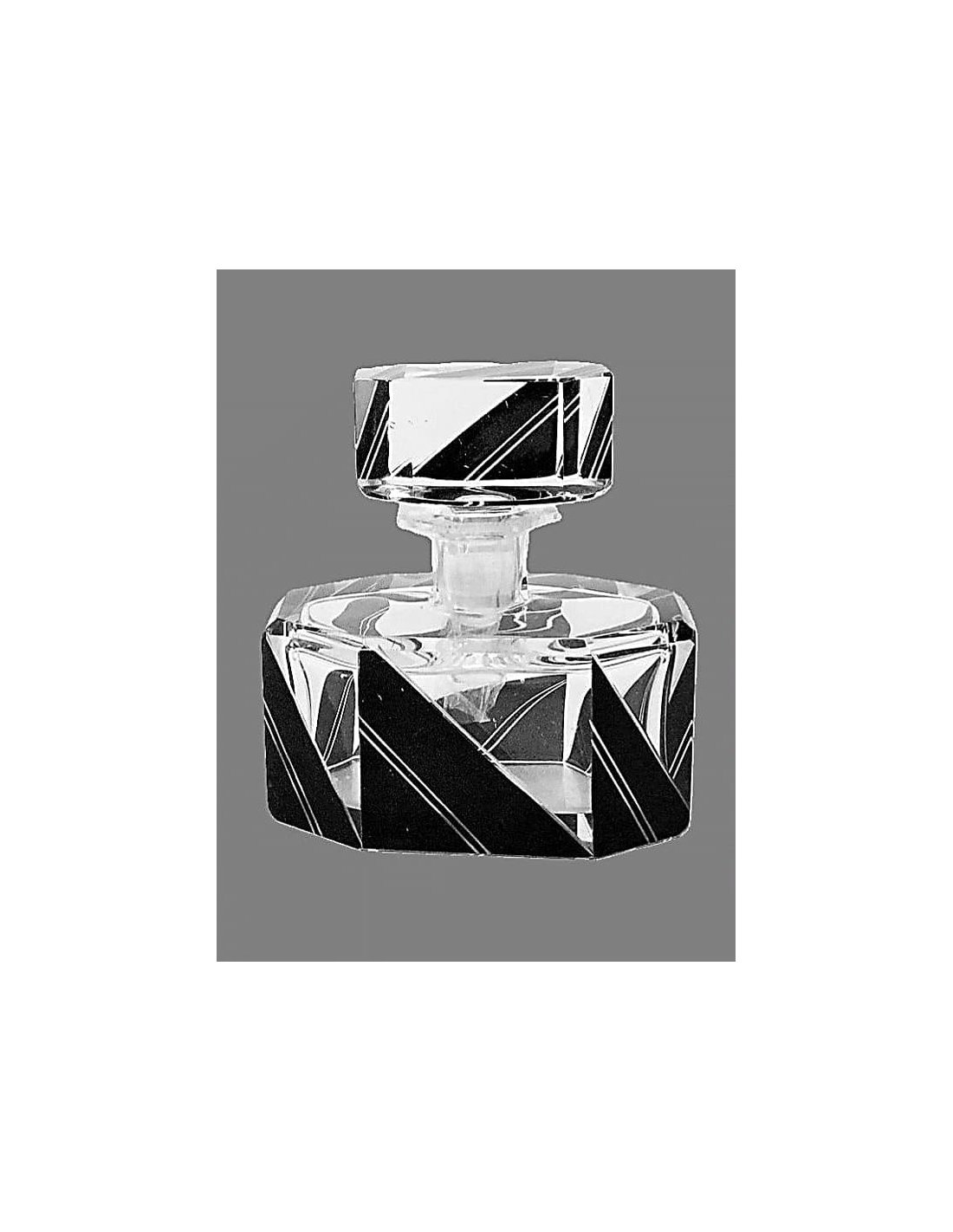Objets en verre Art Nouveau et Art Déco – vases, carafes et plus Flacon de Parfum Art Déco, Bohême Flacon de parfum d'époque Art Déco en cristal taillé avec peinture de soudure noire, Bohême vers 1930. View